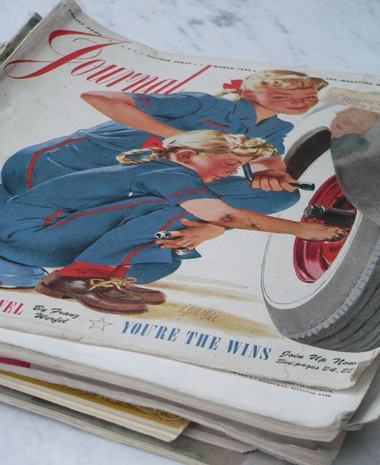 As children, when my brother and I moped around the house feeling sorry for ourselves on rainy days, our indomitable grandmother would say ‘What you need is a good floor to scrub’. A while ago, I scored a stack of 1940s British and American women’s magazines in a junk shop and I thought a few hours flipping through pages of wartime make-do-and-mend would jolt me out of my gloomy state. And give me an excuse to ignore the shamefully grubby kitchen floor.