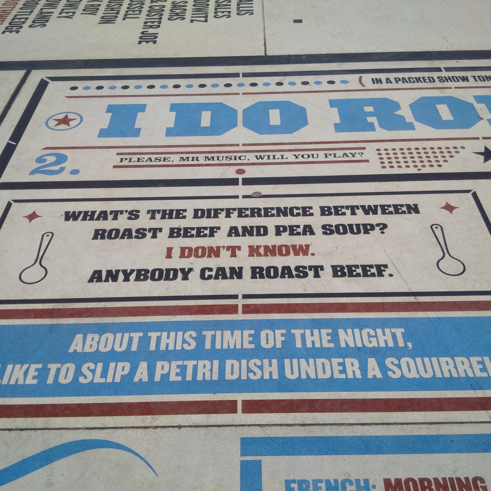 - We skipped across the Comedy Carpet, Gordon Young’s tribute to English variety. A pleasing number of terrible food-based gags.
