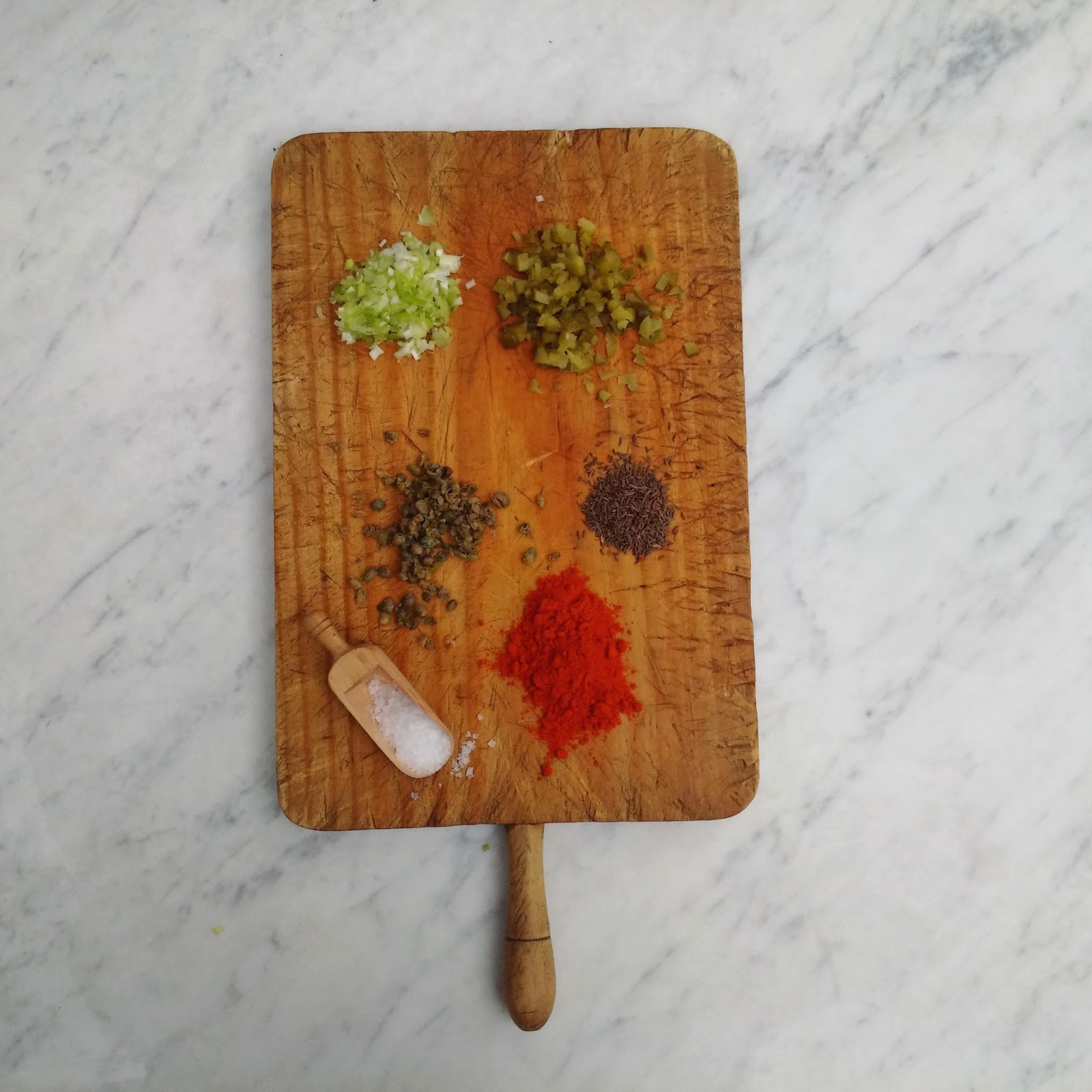Forgive me, TS Eliot, for saying that I measure out my life in measuring spoons. Quarter of a teaspoon, half a teaspoon, a teaspoon; half a tablespoon, a tablespoon. When I’m developing recipes, accuracy is everything. Measure and measure again. So when I’m on holiday, one of the purest of pleasures for me is to scatter, toss, fling ingredients around with a recklessness that would get me fired in my real life. Here, it just gets me fired up. So you need to forgive me, too, for having no proper measurements in this recipe. But hey, you’re a clever sort, you can figure it out.