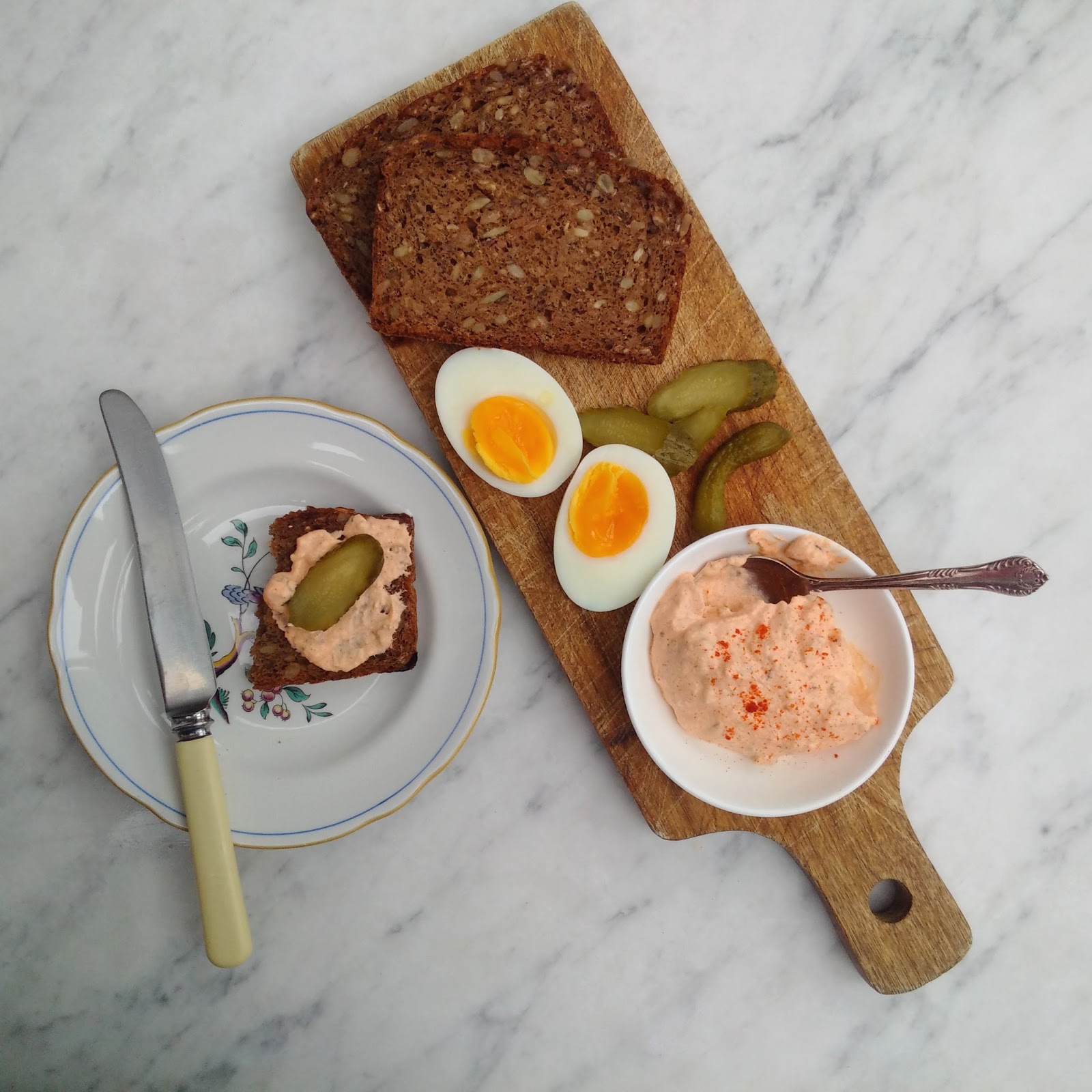 Serve with rye bread (you can lightly toast this if you like) and more pickles, and/or some chopped boiled egg.